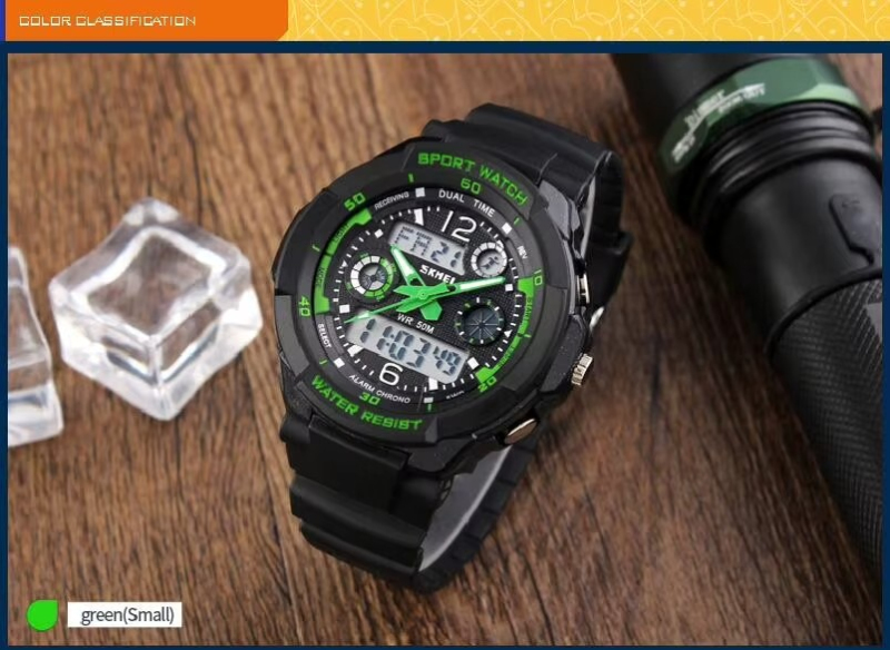Digitální hodinky značky Skmei, ocení všichni sportovci! Digitální Hodinky mají moderní design a jsou vybaveny čtyřmi různými funkcemi: zobrazením času, data, alarmem a stopkami. Podsvícený displej vám usnadní zkontrolovat čas i za tmy. Hodinky jsou voděodolné až do 50 metrů. Nastavitelný pásek zaručuje příjemné nošení i při běhání a sportování.