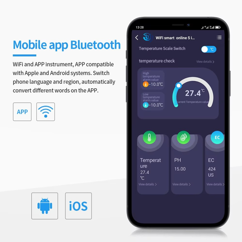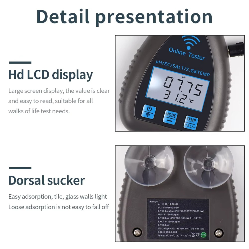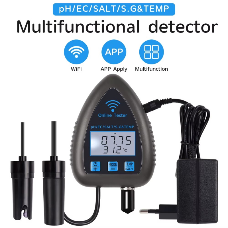 Tuya WiFi inteligentní tester kvality vody 5v1 s odnímatelnou multifunkční elektrodou umožňuje přesné a rychlé měření pH, elektrické vodivosti (EC), relativní hustotu (S.G.), obsahu soli a teploty v reálném čase. Díky připojení k aplikaci Tuya Smart získáte přehled o aktuálních i historických datech přímo ve svém telefonu. Zařízení je vhodné pro širokou škálu použití – od akvárií a hydroponie přes bazény až po pitnou vodu či laboratorní prostředí.