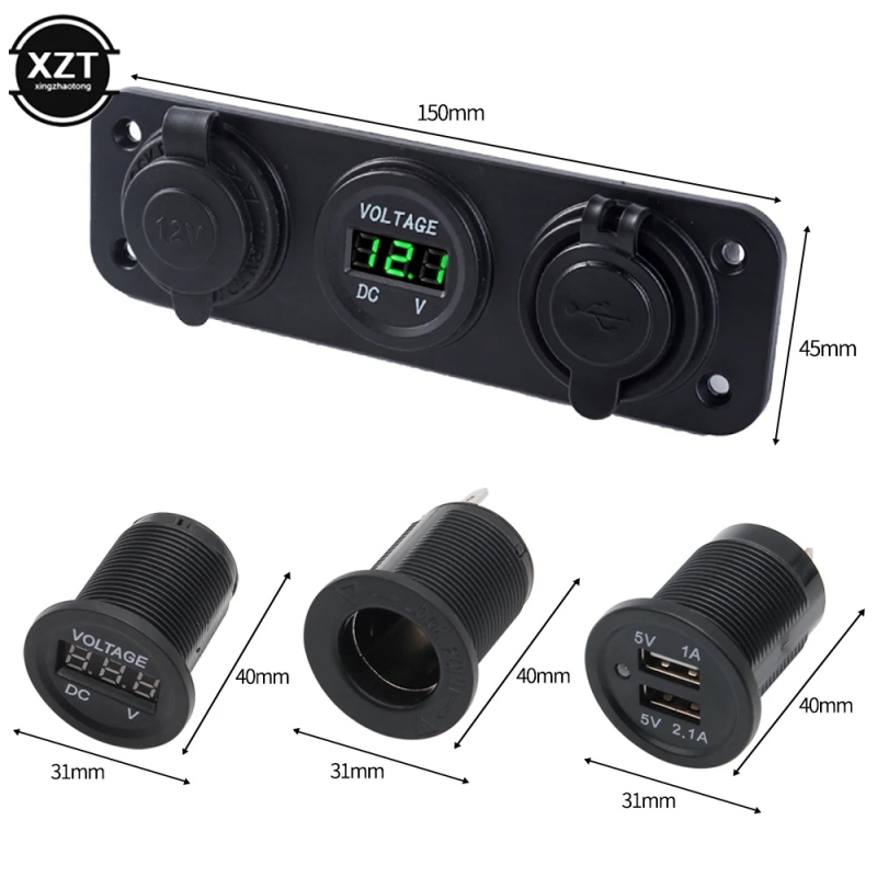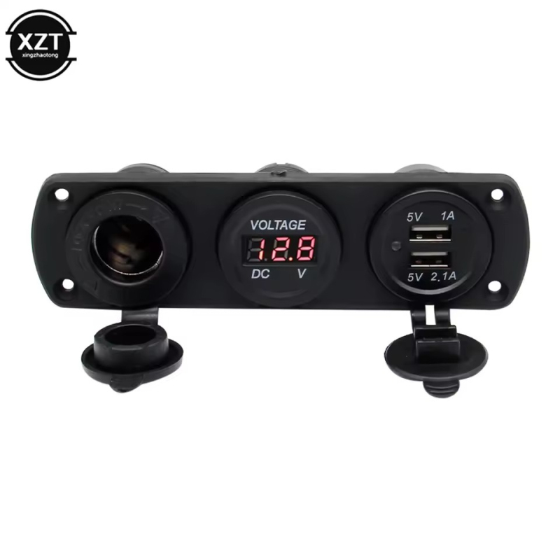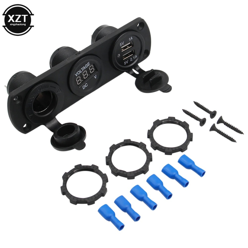 Multifunkční panel kde najdete: vodě-odolnou duální USB zásuvku s dvěma USB výstupy s výkonem 1A a 2,1A, CL auto-zásuvku a voltmetr. Panel je vhodný pro automobilový a lodní průmysl.