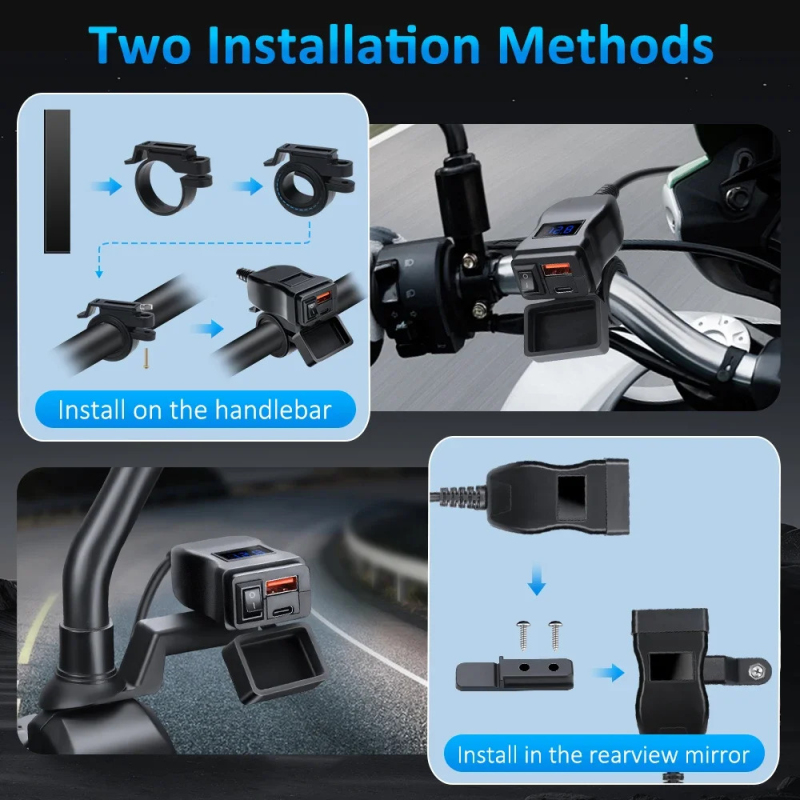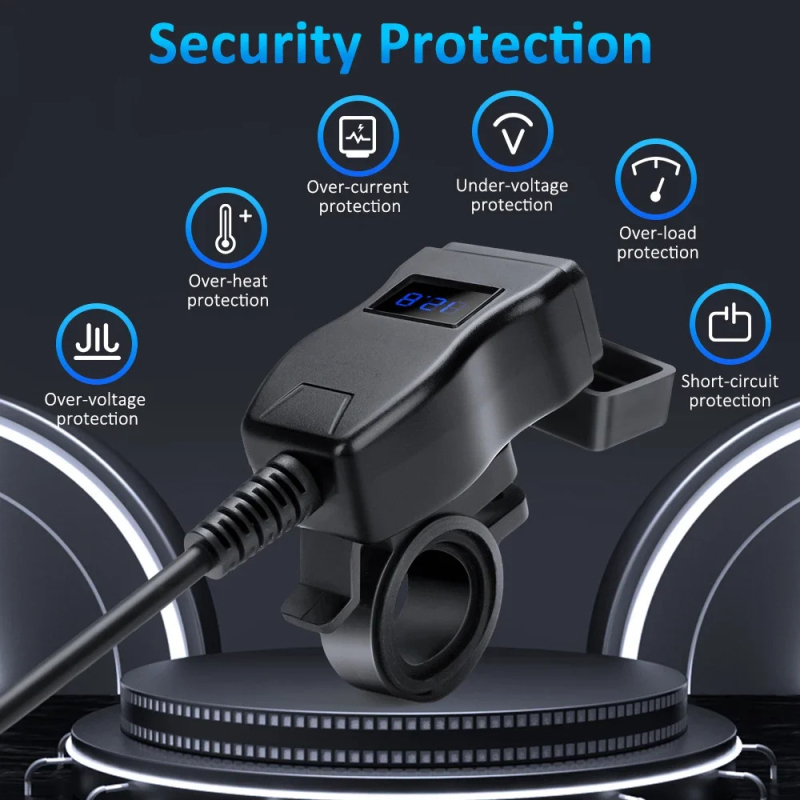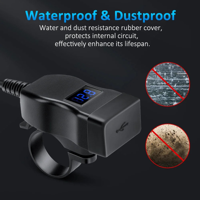 Silné nabíjení na obou USB. Rychlonabíjení QUICKCHARGE pro přístroje podporující tuto funkci. Velikost- její velikost je naprosto minimální, vejde se opravdu všude. Vypínač ON/OFF, takže motorce neodebírá proud, když dlouho nejezdíte. Voltmetr, praktická věc – víte, v jaké kondici je vaše moto-baterie a alternátor a při kempování kolik toho ještě můžete nabít abyste ráno bezpečně nastartovali.